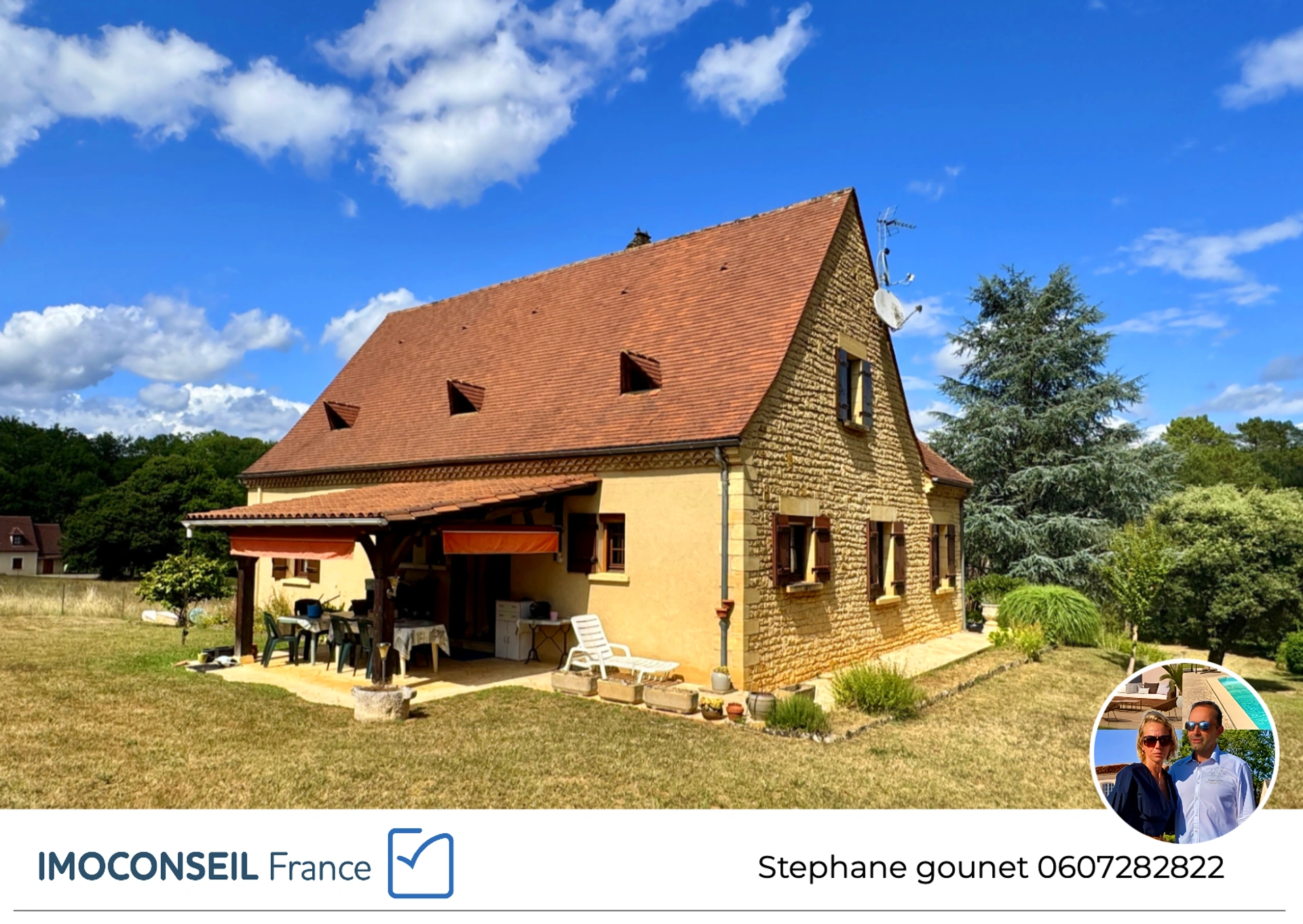 Dans un environnement calme et résidentiel, découvrez cette maison périgourdine de caractère, située au coeur d'une commune dynamique et très recherchée pour sa qualité de vie : commerces de proximité, restaurants, structures médicales, école, médiathèque, voie verte... Le tout, à quelques minutes seulement de Sarlat, capitale du Périgord Noir, et des rives paisibles de la Dordogne. Sur un terrain paysagé de 2 456 m2, cette maison spacieuse d'environ 174 m2 habitables offre des volumes généreux et une ambiance chaleureuse. La pièce de vie de 40 m2 s'organise autour d'une superbe cheminée en pierre de taille. La cuisine indépendante s'ouvre sur une terrasse couverte exposée ouest, idéale pour les repas d'été. Le rez-de-chaussée accueille également deux chambres avec parquet bois, dont une suite parentale, ainsi qu'une salle d'eau. À l'étage, un grand palier dessert deux vastes chambres, dont une de 40 m2 avec sanitaires attenants. Le sous-sol intégral de 108 m2 comprend plusieurs espaces pratiques, dont un double garage de 52 m2.