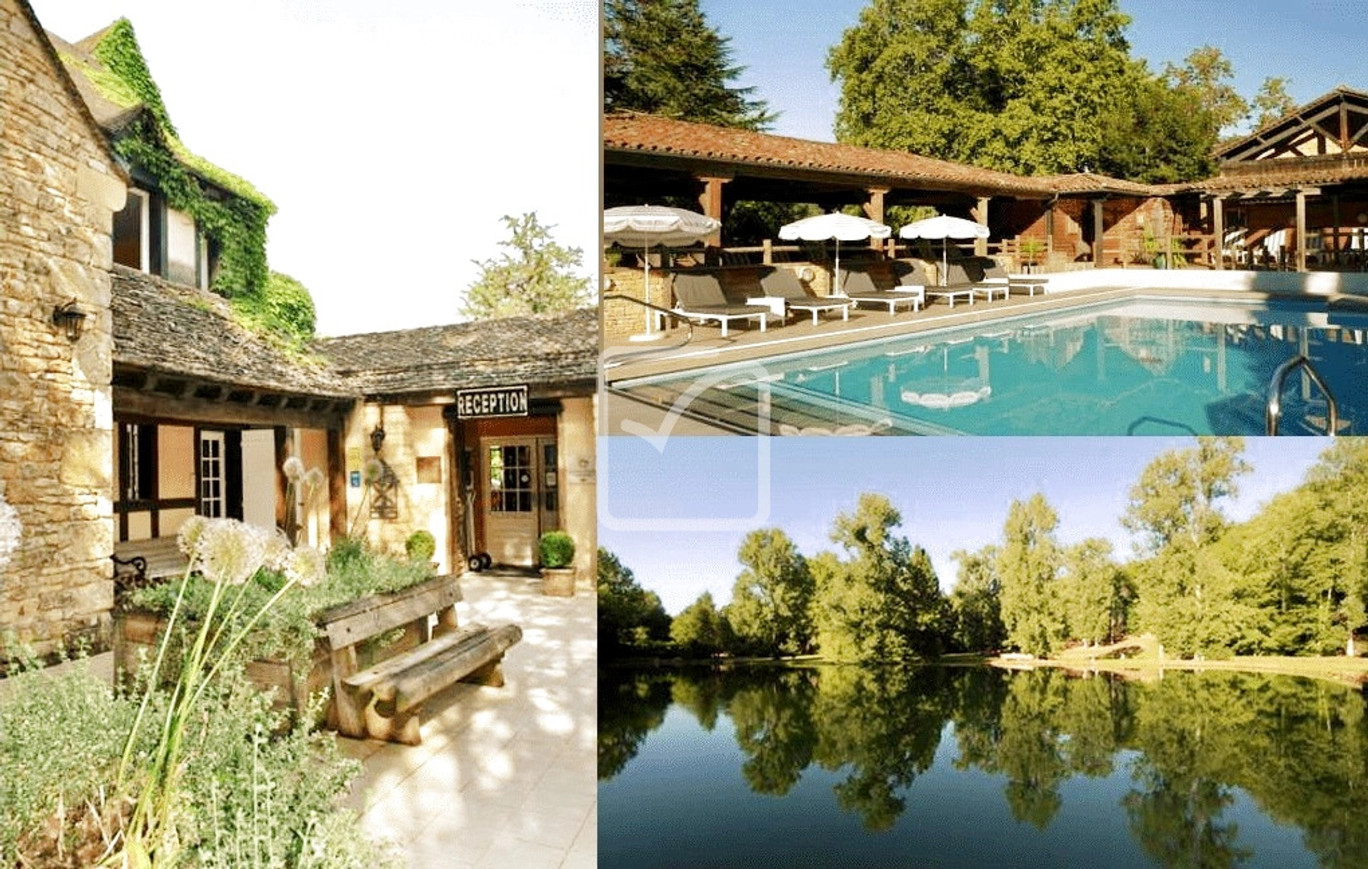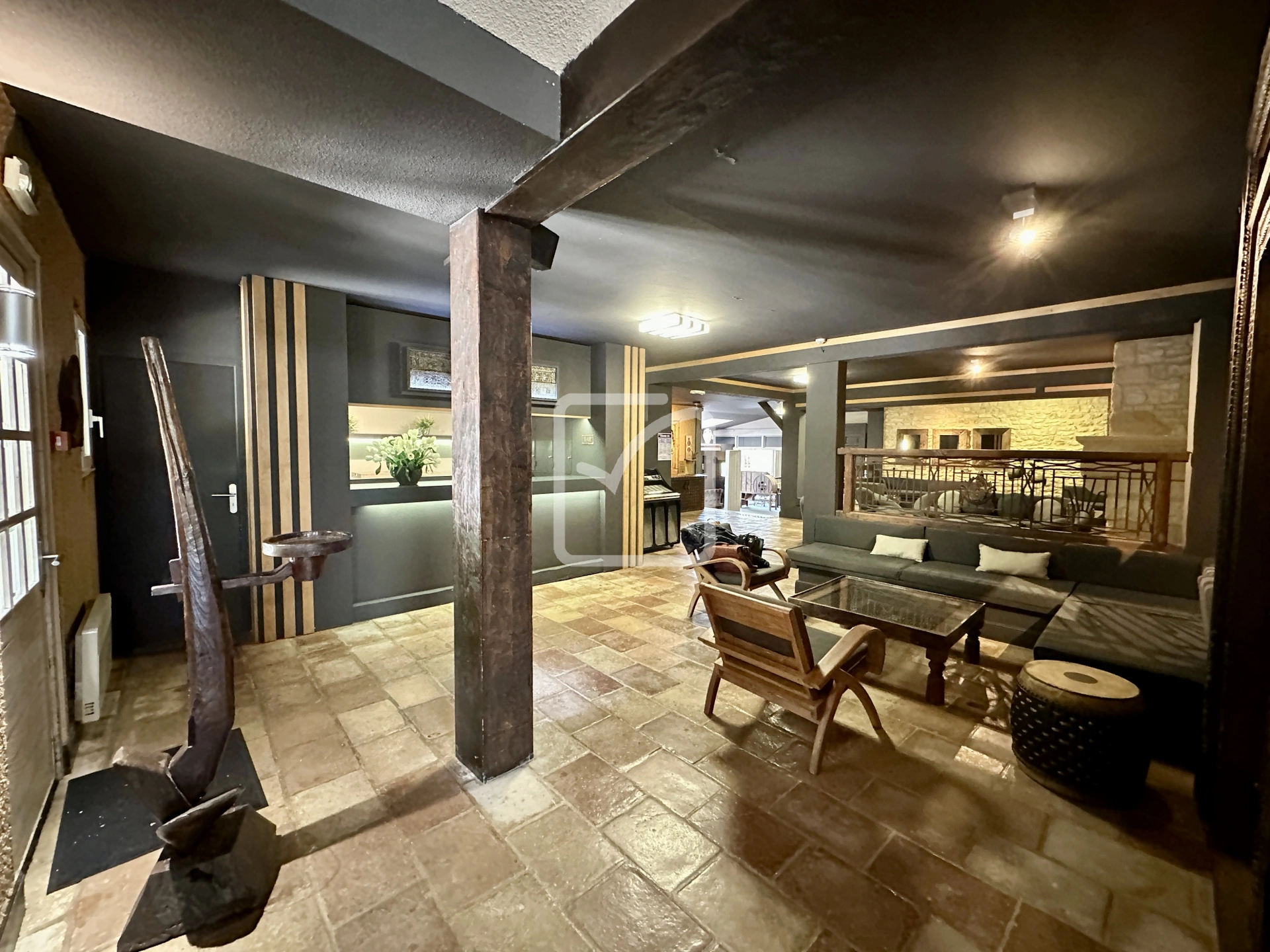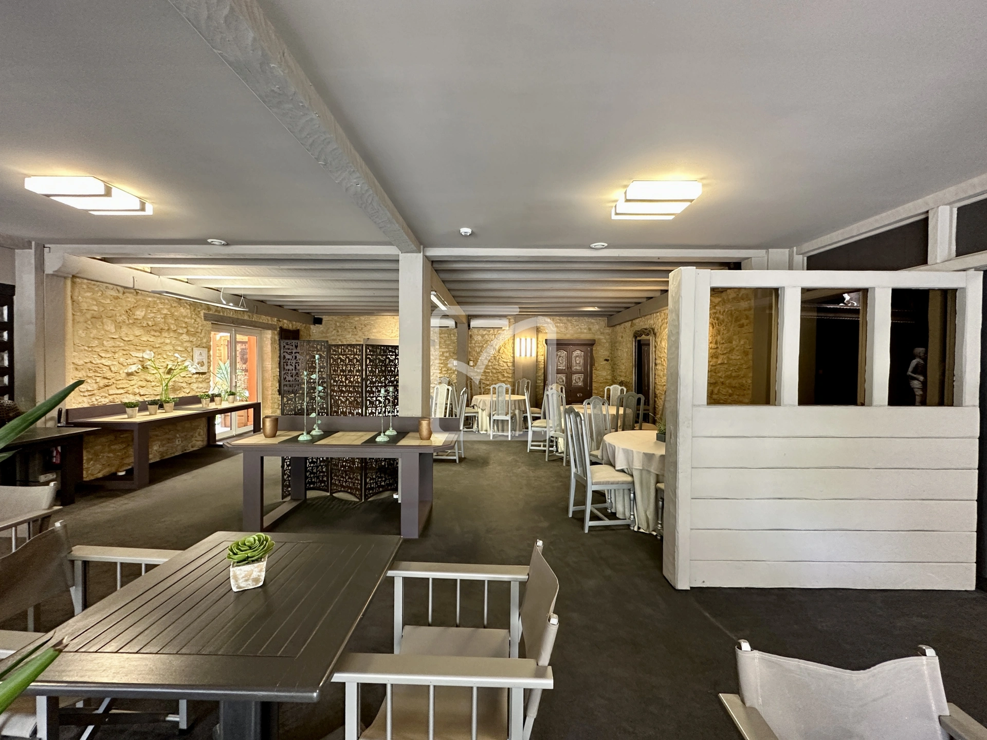 Ensemble immobilier de caractère, Exclusif à SARLAT, de plus de 1500 m2 aux prestations Hotelières **** sur plus de cinq hectares d'espace naturel avec ses étangs. Répartie en 3 espaces indépendants, Un espace d'hébergement sur trois niveaux avec ascenseur, 35 chambres vastes & climatisées, une vaste réception, espaces détente, salles de restaurant, cuisine pro et buanderie.