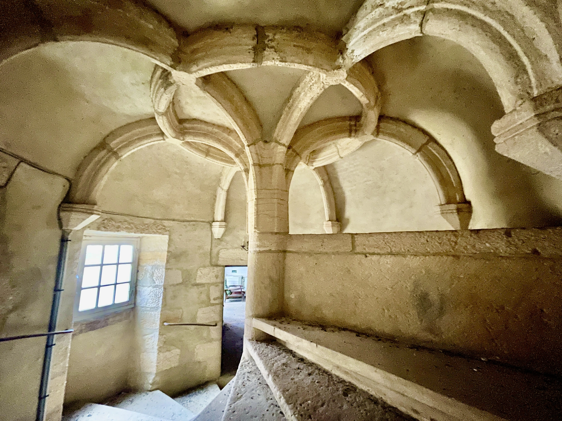Dominant l'angle d'un immeuble Renaissance orné de fenêtres à meneaux, cette authentique tour de guet n'est pas une simple curiosité architecturale : c'est un témoignage vivant du passé militaire et noble de la cité. Créneaux, machicoulis, toiture conique, escalier en pierre à vis Louis XIII... chaque détail évoque un patrimoine inestimable.
